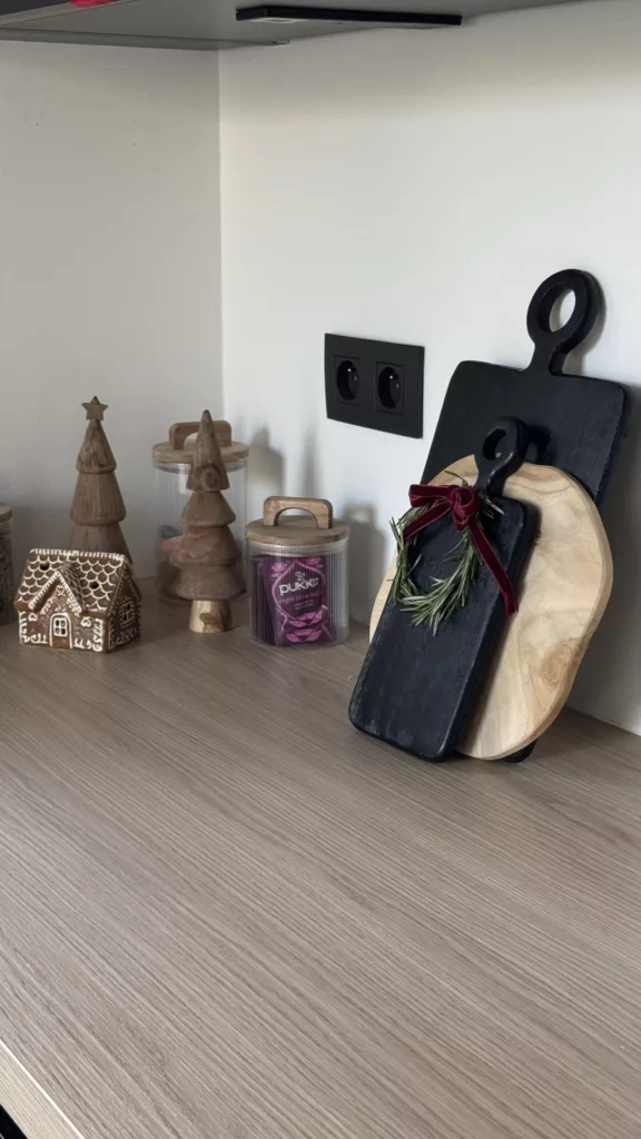 La cuisine, c’est clairement la pièce que je décore le moins chaque année. Et pourtant… c’est souvent là qu’on passe le plus de temps pendant les fêtes !